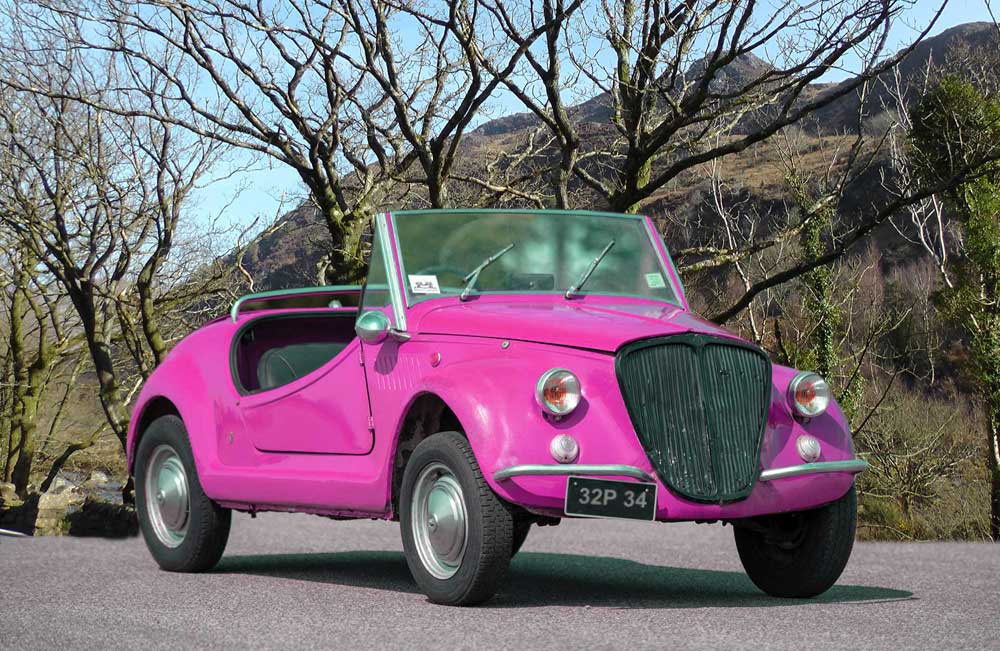 His creation came out in 1967. It was based on the Fiat 500 Nuevo Sport, complete with the rear mounted twin cylinder air cooled 500cc engine, producing a puny 21bhp. An open top body was welded to the steel tube frame. A fabric 'roof' was supportedby a metal frame with a proper roof available as an optional extra.